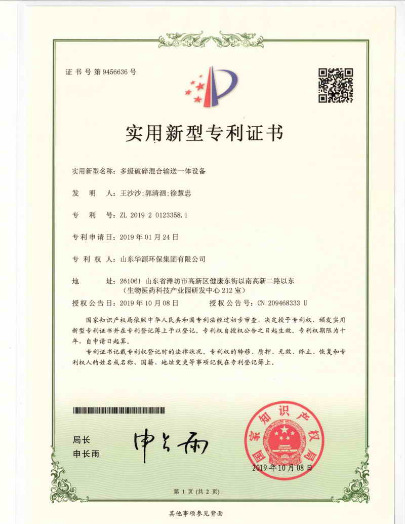 專(zhuān)利證書(shū)一種廢鋁灰生產(chǎn)速凝劑用鋁灰磨粉裝置
