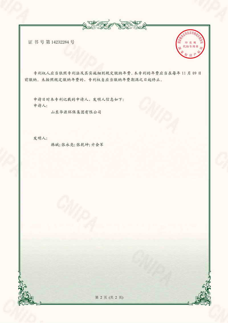 專利證書一種廢鋁灰生產速凝劑的反應物混合設備